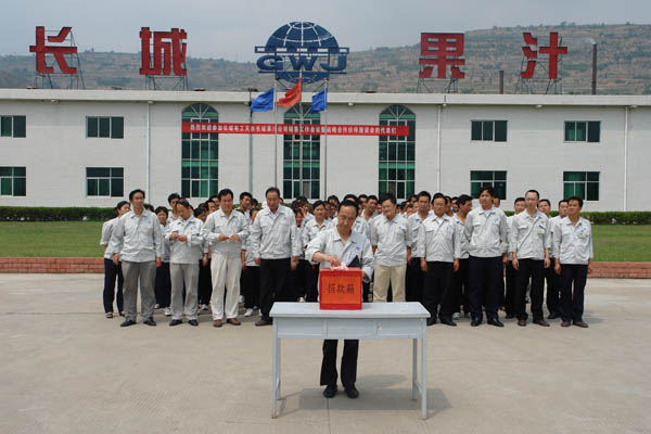 8月10日,捐款儀式在公司辦公樓前舉行,王根成書記作動員講話。公司領(lǐng)導(dǎo)柳軍民、王小宏、董占成、秦小強、王建華、馮瑜穩(wěn)帶頭捐款,廣大黨員、干部、職工積極響應(yīng)黨委號召,踴躍捐款,奉獻愛心,共為舟曲災(zāi)區(qū)捐款44615元。 |