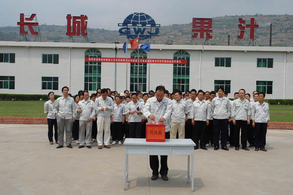8月10日,捐款儀式在公司辦公樓前舉行,王根成書記作動員講話。公司領(lǐng)導(dǎo)柳軍民、王小宏、董占成、秦小強、王建華、馮瑜穩(wěn)帶頭捐款,廣大黨員、干部、職工積極響應(yīng)黨委號召,踴躍捐款,奉獻愛心,共為舟曲災(zāi)區(qū)捐款44615元。 |