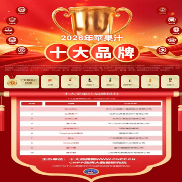 1月18日,中國十大品牌網(wǎng)(CNPP)聯(lián)合CNPP品牌大數(shù)據(jù)研究院發(fā)布2026年蘋果汁十大品牌榜單,我公司旗下品牌“隴上花!睒s登榜首。
